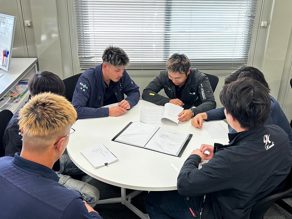 また、若い力と確かな技術、安全第一の姿勢を再確認する為に、定期的に会議を行い、基本に立ち返るようにしています。